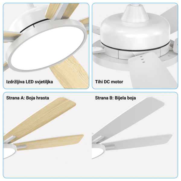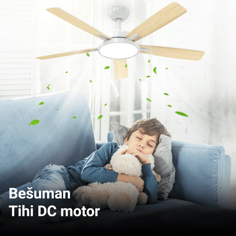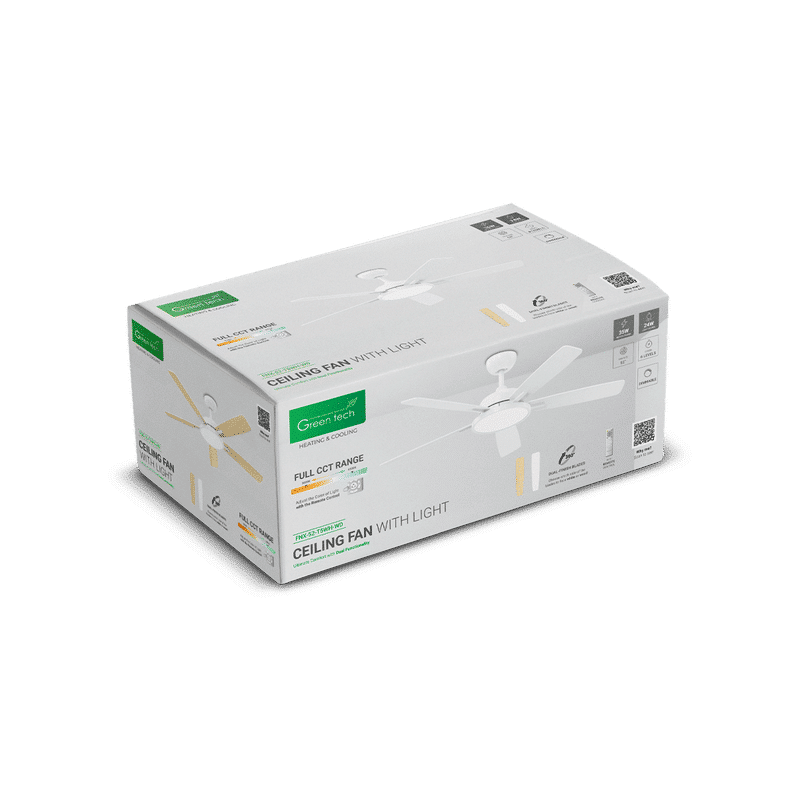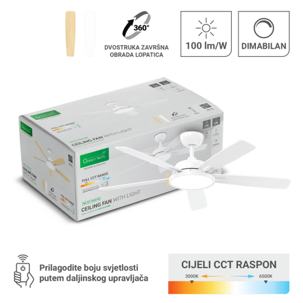 Stropni ventilator sa svjetiljkom Green Tech, 52″, 24W, 3CCT, Bijelo ili Drvo