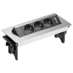 Ugradbene utičnice za radnu površinu izrađene od visokokvalitetnih materijala u sivoj boji. Konzola je opremljena s 3 schuko utičnice.