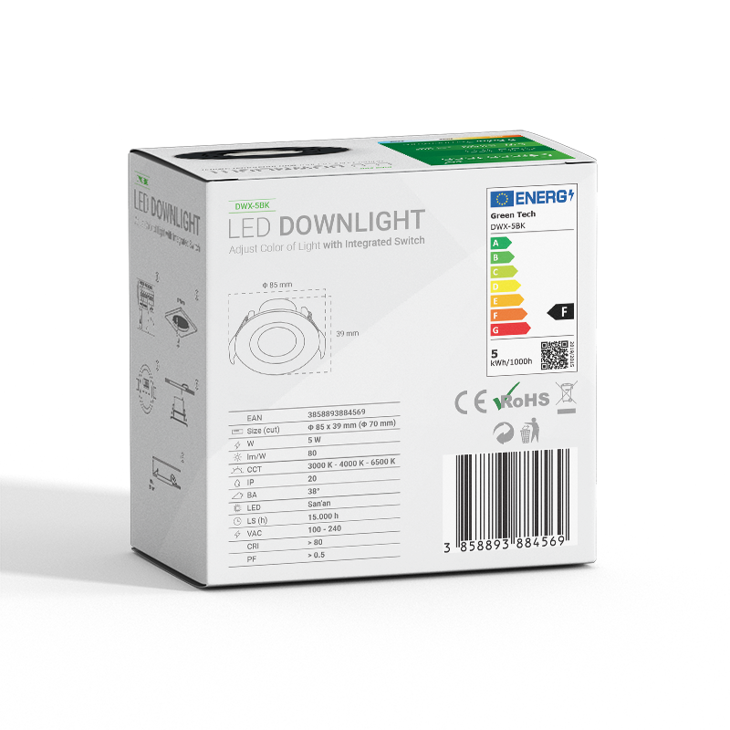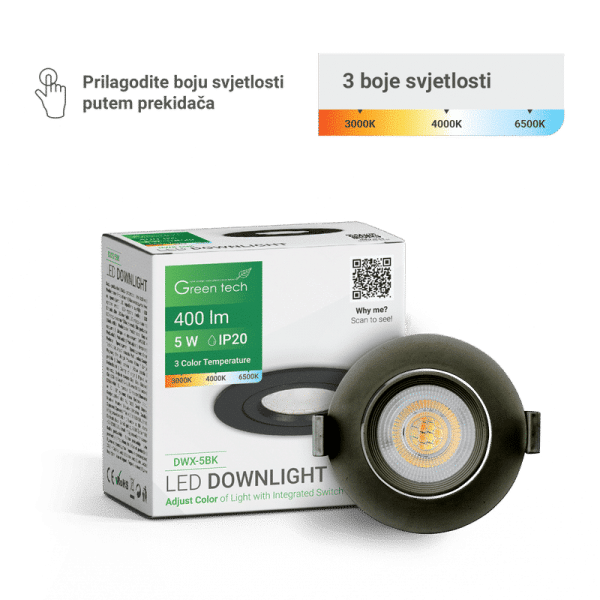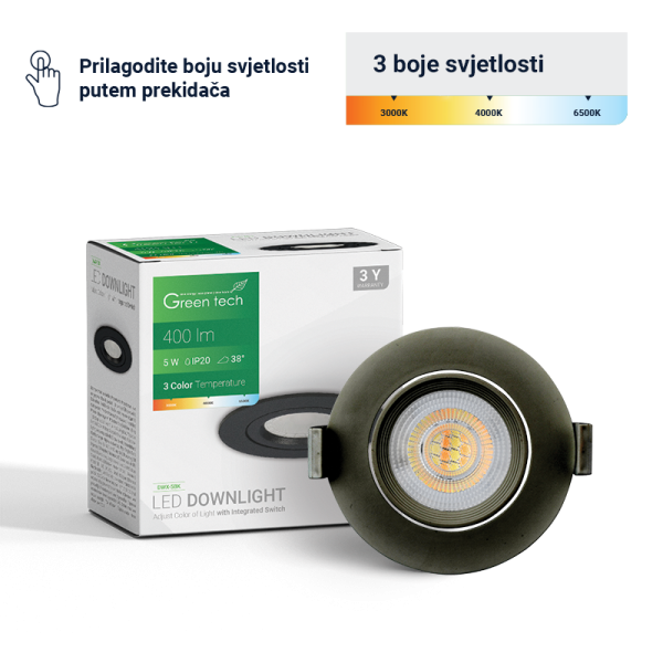 Osvijetlite svoj prostor na moderan način uz Green Tech ugradbenu zakretnu stropnu svjetiljku. Snaga od 5W i prilagodljiva boja svjetlosti čine je idealnim izborom za različite ambijente. Evo ključnih značajki: