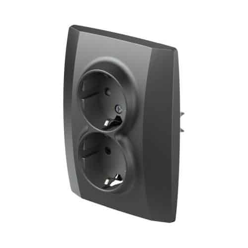 Dupla utičnica Tem Logiq Antracit koristi se za priključivanje dva uređaja na naponsku mrežu. Dvostruka utičnica se montira u kutiju fi 60