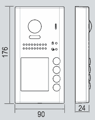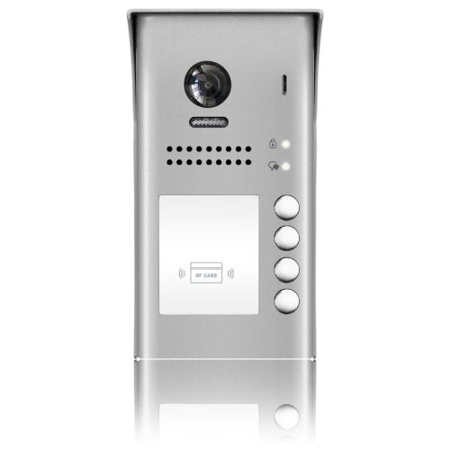 Vtek vanjska jedinica s četiri pozivne tipke za nadžbuknu montažu. Opremljena sa Sony color kamerom s kutom snimanja od 170°. Vanjska jedinica s antivandal premazom opremljena je i čitačem EM kartica. Stupanj zaštite je ip 54 što je prikladno za vanjsku upotrebu.
