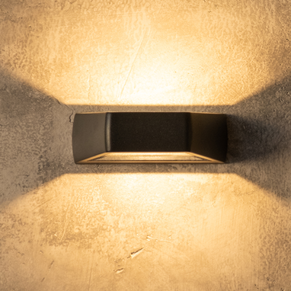 Atraktivna vanjska zidna lampa izrađena od kvalitetnih materijala u antracit boji, otpornih na kišu i vanjske vremenske utjecaje. Dekorativna lampa ima snagu 6W što ju čini dovoljno jakom za osvijetliti prostor od 4m2.