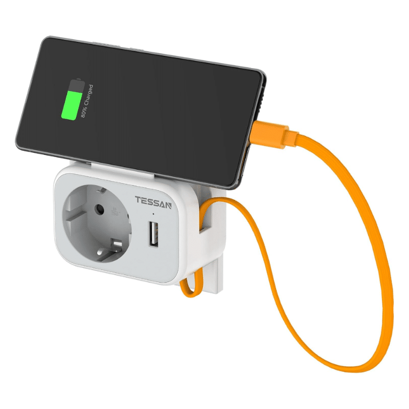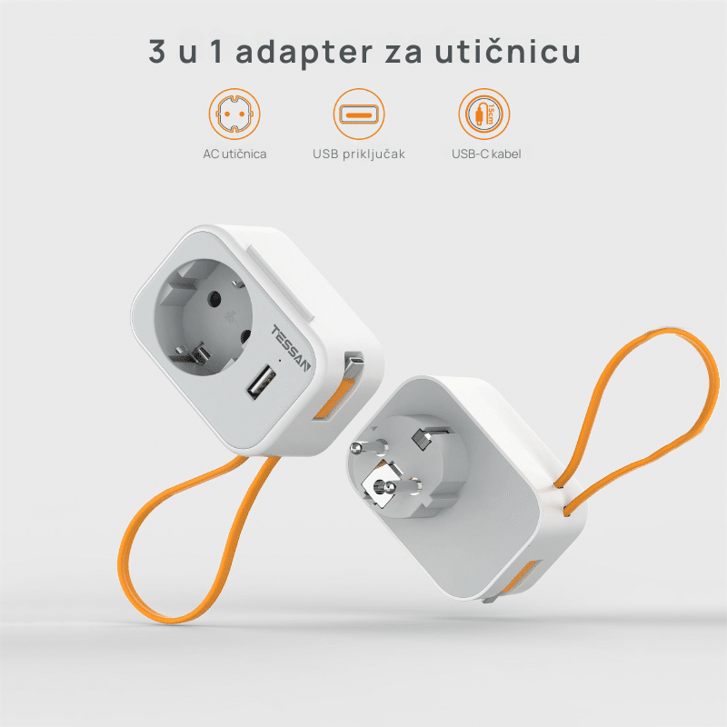 Kompaktna zidna utičnica s USB punjenjem i integriranim Type-C kabelom, idealna za brzo i praktično napajanje mobilnih uređaja