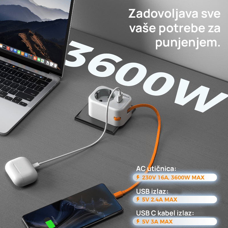 • USB-A izlaz: 5V / 2.4A po portu, 5V / 3A ukupno