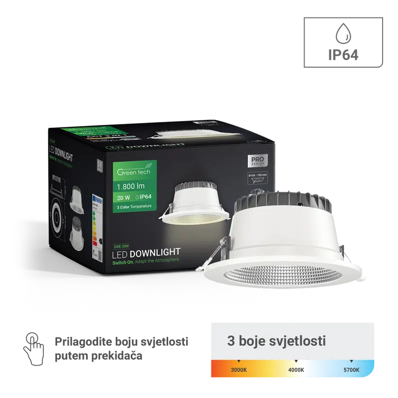 GREEN TECH LED downlight Green Tech 22W, 3 CCT, okrugli - DW-R03-22W-3CCT