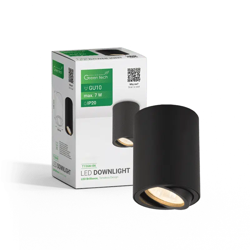 Nadgradna svjetiljka Green Tech, crna boja, grlo GU10 - TS116-BK